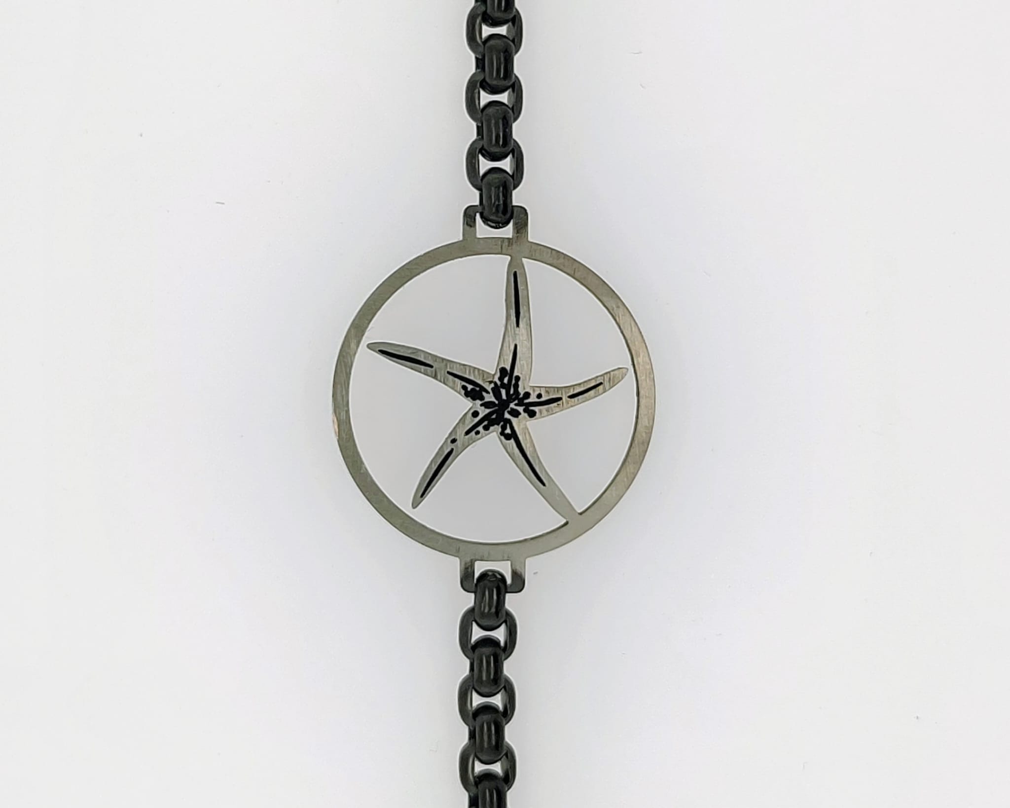 Das Armband besteht aus einer 4mm Venizianer-Inka Titankette mit einem Rondellomotiv. Es sind weitere oder eigene Motive erhältlich. Ihren Ideen sind nur wenige Grenzen gesetzt.